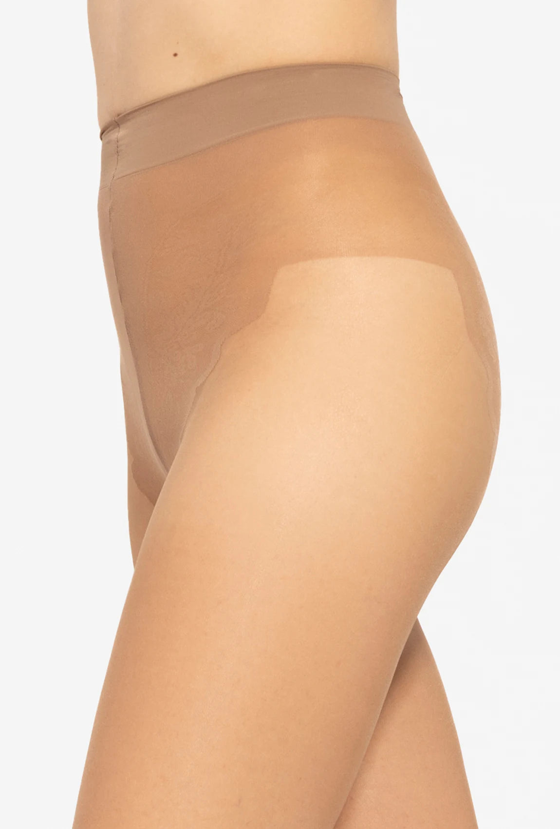 Rajstopy Fortissima 8 den w kolorze Golden to połączenie subtelności, wygody i elegancji. Ich cienka, transparentna struktura delikatnie podkreśla nogi, nadając im naturalny, lekko opalony wygląd. Model wyróżnia się ozdobną częścią majtkową i brakiem zaznaczonej części palcowej, co sprawia, że wygląda wyjątkowo estetycznie i gładko.