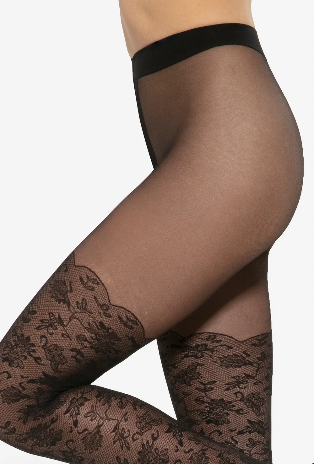 Wzorzyste rajstopy imitujące pończochy Pasione z najnowszej jesienno-zimowej kolekcji marki Gatta zostały zaprojektowane z myślą kobietach, które podczas chłodniejszych pór roku nie chcą rezygnować z efektu, jaki zapewniają klasyczne pończochy. Romantyczny kwiatowy deseń z elementami arabeski i splotów siateczkowych tworzy oryginalny wzór koronkowy. Dzięki dwóch grubościach - 20 i 40 DEN - transparentne rajstopy dodadzą lekkości i elegancji niejednej jesiennej lub zimowej stylizacji.