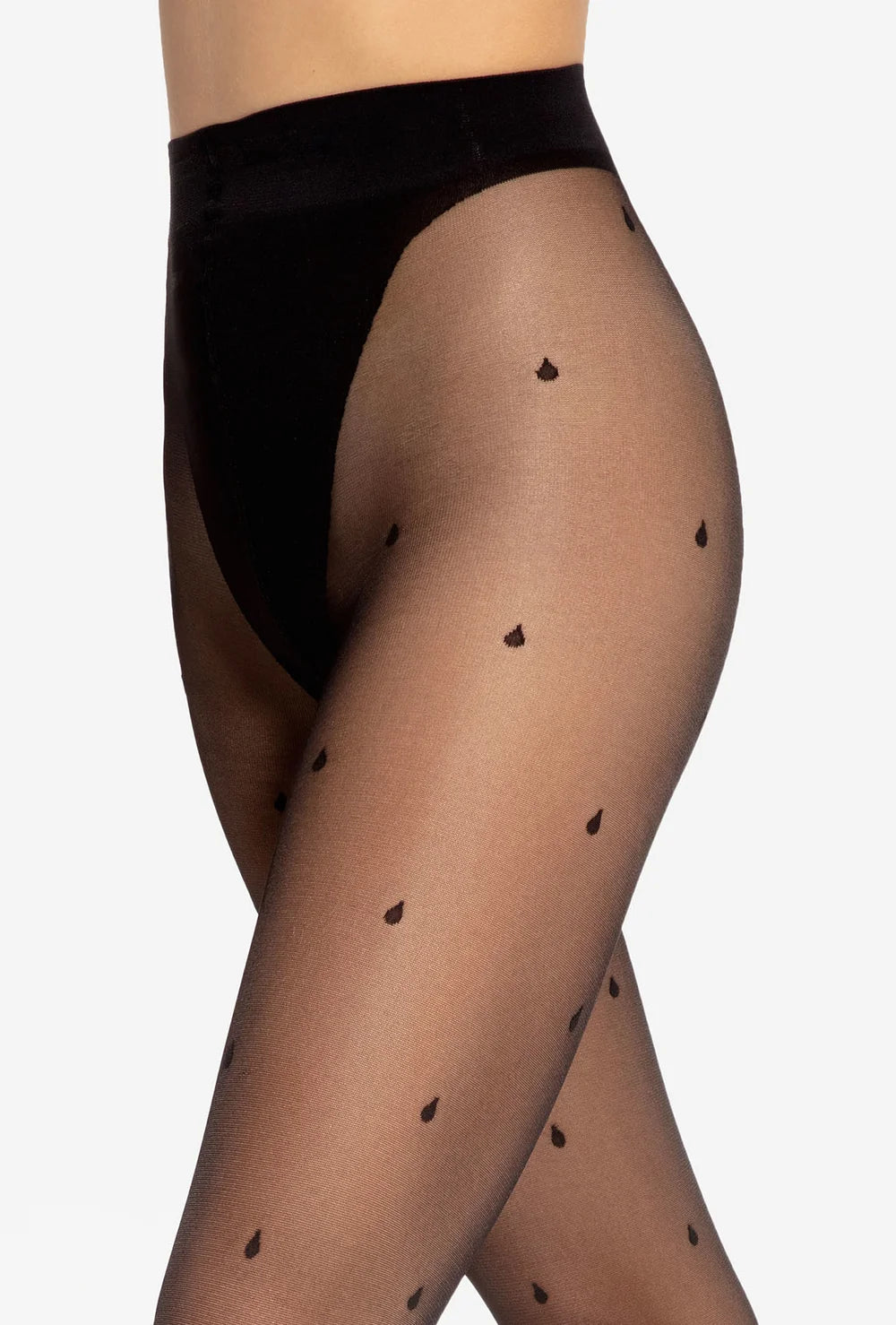 Wzorzyste rajstopy z przędzy ekologicznej Q-eko Trends od marki Gatta to nowość na sezon wiosna-lato 2023. Model o grubości 20 DEN posiada nieoczywisty wzór w drobne krople i tym samym nawiązuje do jednego z elementów środowiska naturalnego, czyli wody. Może być on także sposobem na wyrażenie Twojego nastroju w danym dniu. Interpretuj wzór na swój sposób i noś nasze ekologiczne rajstopy wzorzyste tak, jak lubisz! W sklepie online Gatta model czeka na Ciebie w standardowych rozmiarach 2-S, 3-M oraz 4-L.